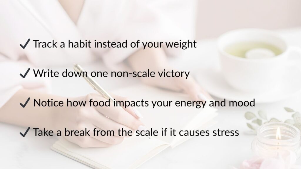Try writing one non-scale win each week in your journal or notes app — you’ll be amazed by how much you’re achieving.
