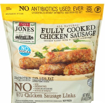 Three links for 10 grams of protein, add these to pancakes, eggs or any breakfast to add a boost of protein. These are found in the freezer section.